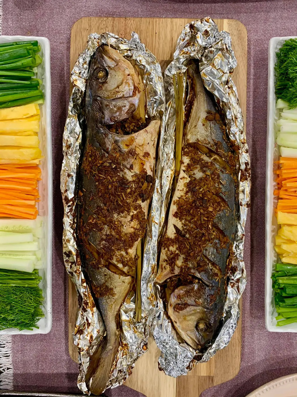 CÁCH LÀM CÁ CAM NƯỚNG CUỐN NGŨ SẮC