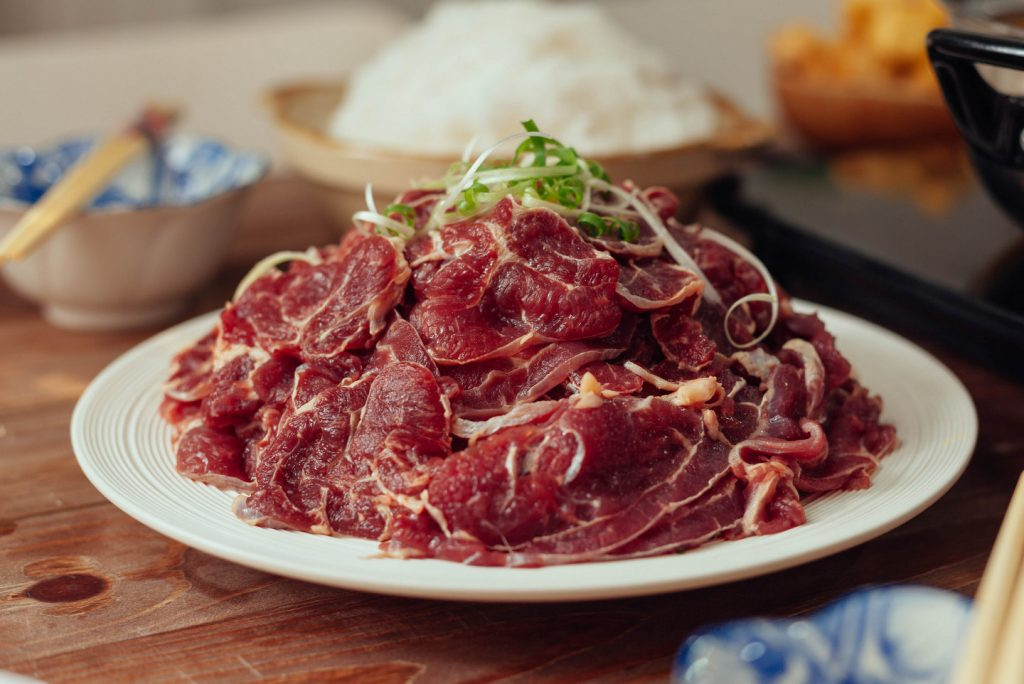 - Thịt bò rửa sạch, thấm khô, cho thịt vào ngăn đá đến khi hơi cứng lại, thái mỏng
