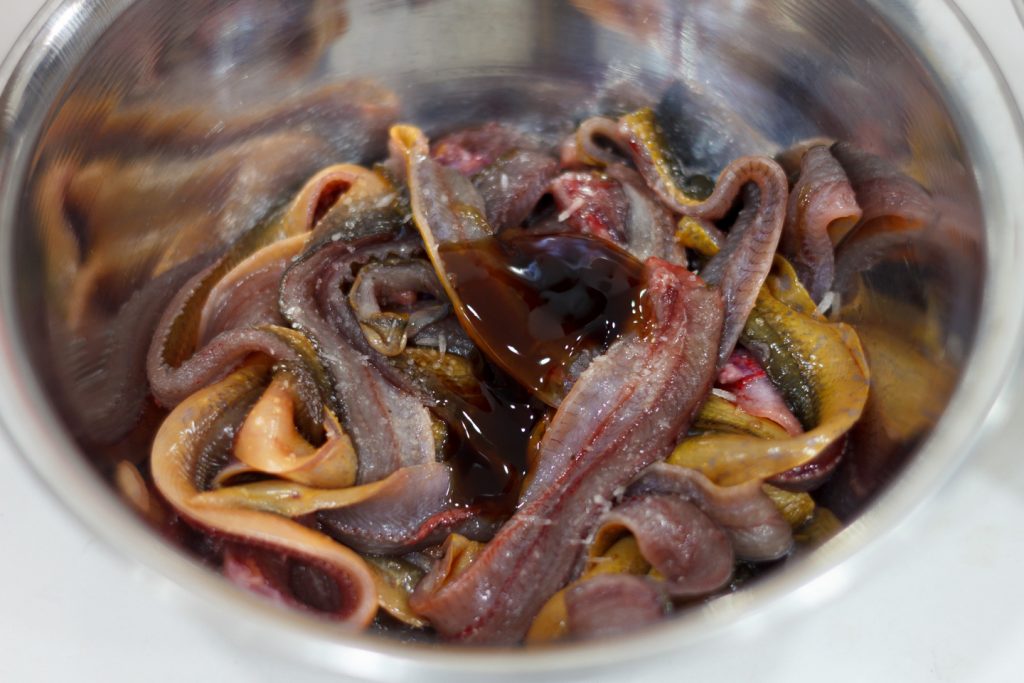 – Lươn làm sạch, lọc thịt và xương riêng, để ráo nước. Một nửa lươn thái sợi dài, dày khoảng 1 – 1,5 cm để làm lươn chiên giòn. Một nửa lươn thái khúc ngắn khoảng 6 – 7 cm làm lươn xào mềm.