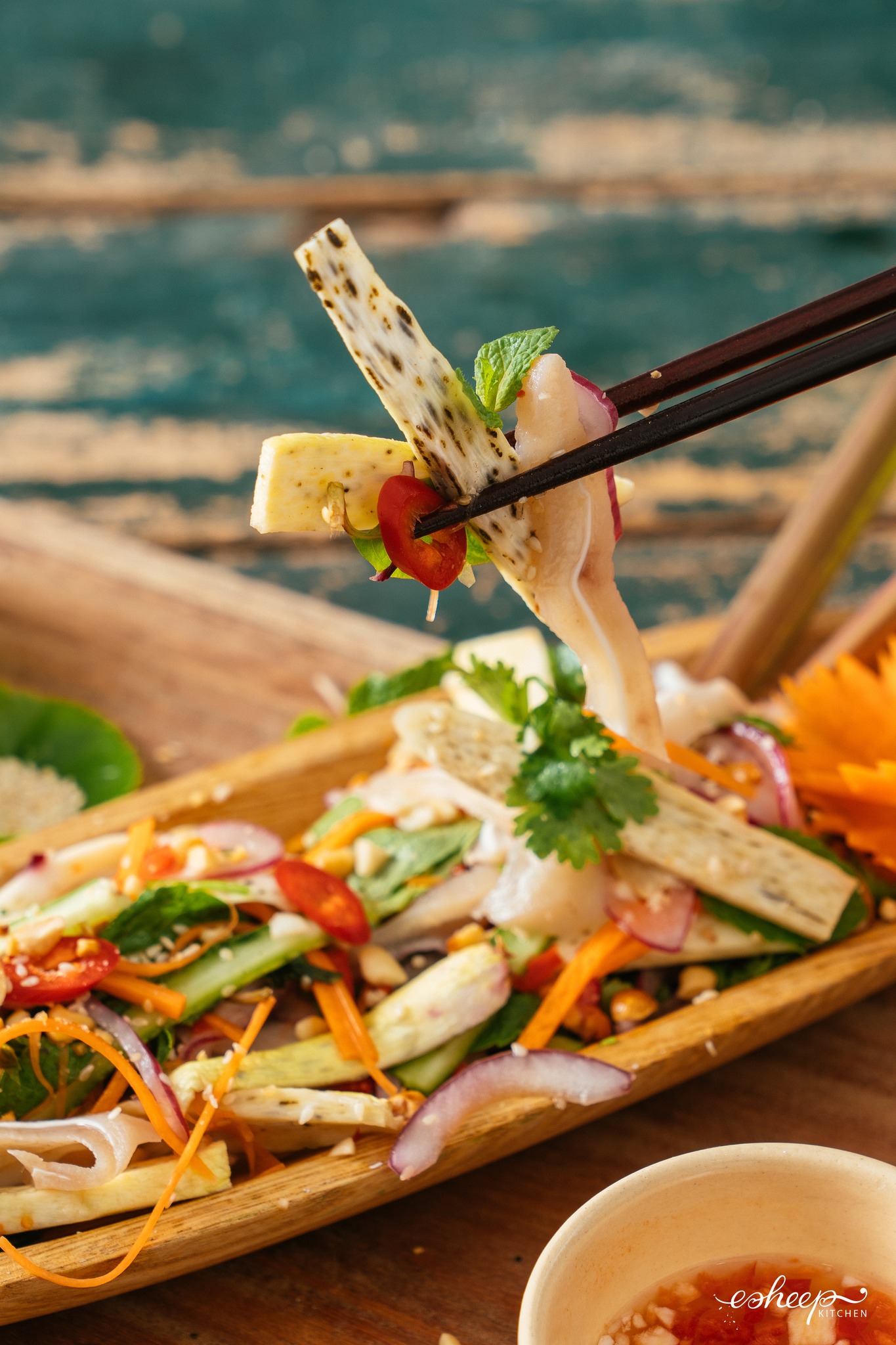Không thể thiếu nước xốt chua ngọt để tạo ra món Gỏi vạn người mê.