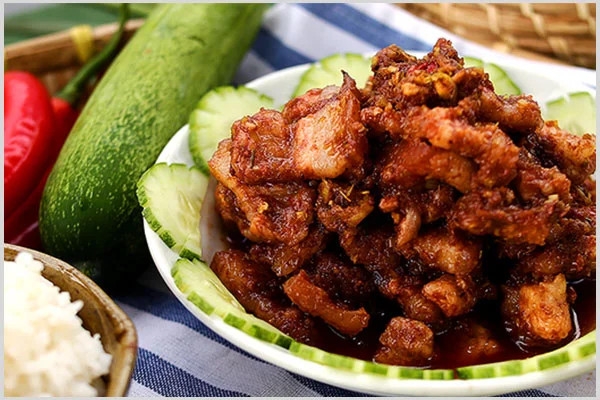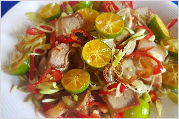 4. Thịt ba chỉ chiên lắc sả, tắc